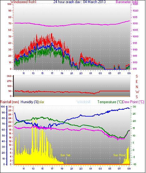 Maximum pressure = 1010.3 mb on day 03 at time 08:55