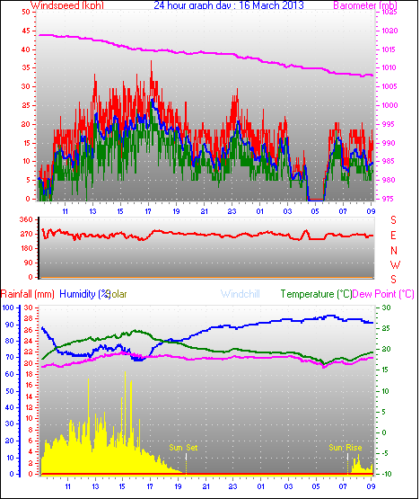 Average barometer = 1016.5 mb